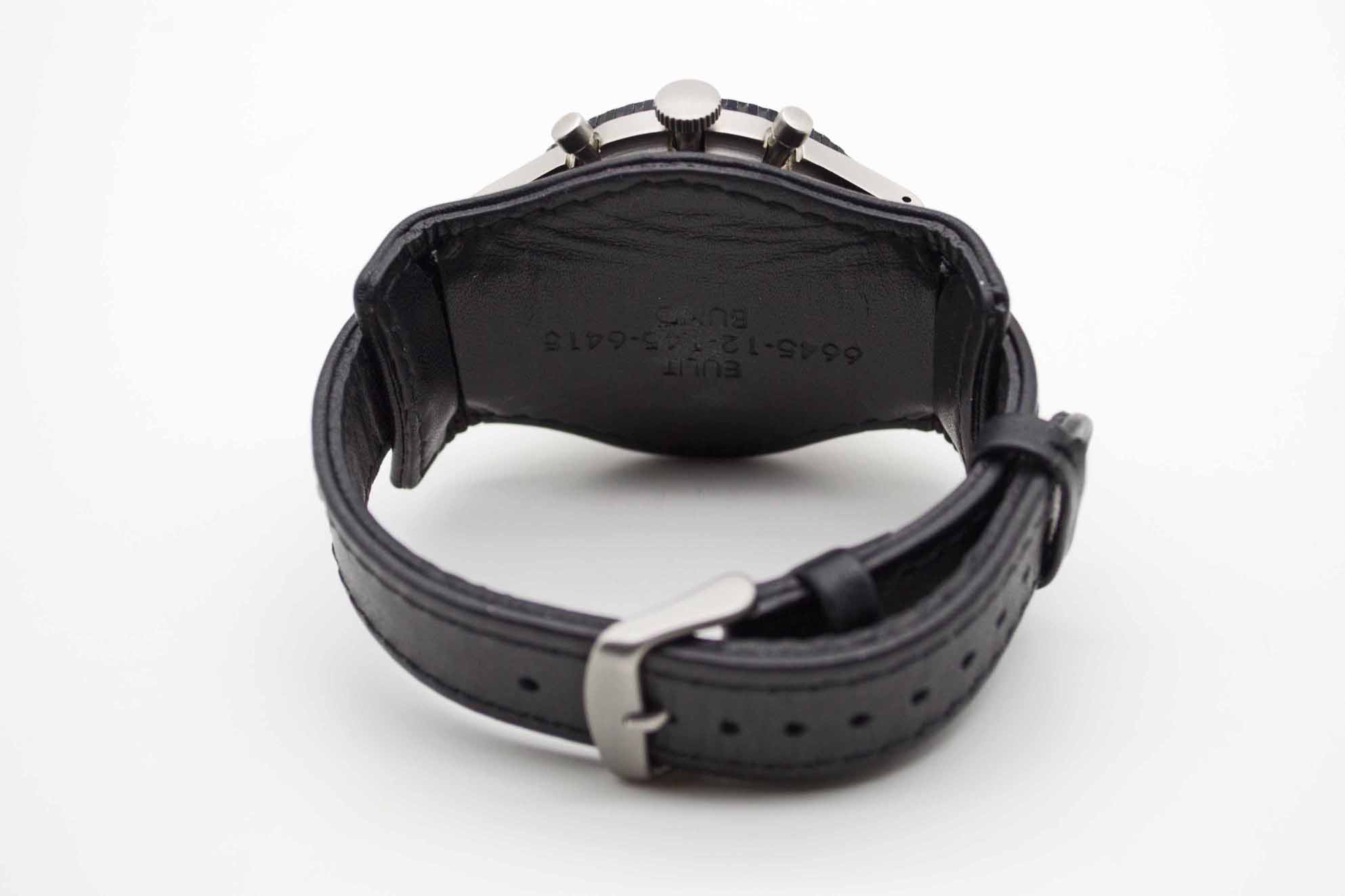 Bundeswehr Chronograph Flyback 1550SG, 43 mm Gehäuse mit schwarzem Tritium Zifferblatt, gefadeter Lünette und Lederarmband mit BW Versorgernummer. Sehr schön gealterte Militäruhr mit neuer Revision und unserem Vintage Leder Würfel. Gerne nehmen wir Ihre hochwertige Armbanduhr in Anzahlung. Zu unserer Sicherheit lagern wir sämtliche Uhren unseres Bestandes extern im Banksafe, daher bitten wir um vorherige Terminvereinbarung.