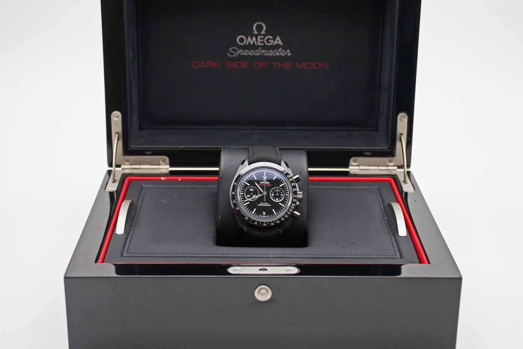 Speedmaster Dark Side Of The Moon 311.92.44.51.01..003, 44,25 mm Keramik Gehäuse mit Keramik Zifferblatt und schwarzem Omega Textilaramband mit Omega Keramik/Titan Faltschließe. Perfekte Dark Side of the Moon Box mit Umkarton, Bedienungsanleitung, schwarzem Lederetui, Pictogram Karte, Hang Tag mit passender Gehäuse Nr. und Omega Garantiekarte aus 2018. Chrono24 Zertifikat inklusive. Die Uhr befindet sich in perfektem und sehr wenig getragenem Zustand. Inzahlungnahmen sind nur im Geschäft möglich. Zu unserer Sicherheit lagern wir sämtliche Uhren unseres Bestandes extern im Banksafe, daher bitten wir um vorherige Terminvereinbarung.