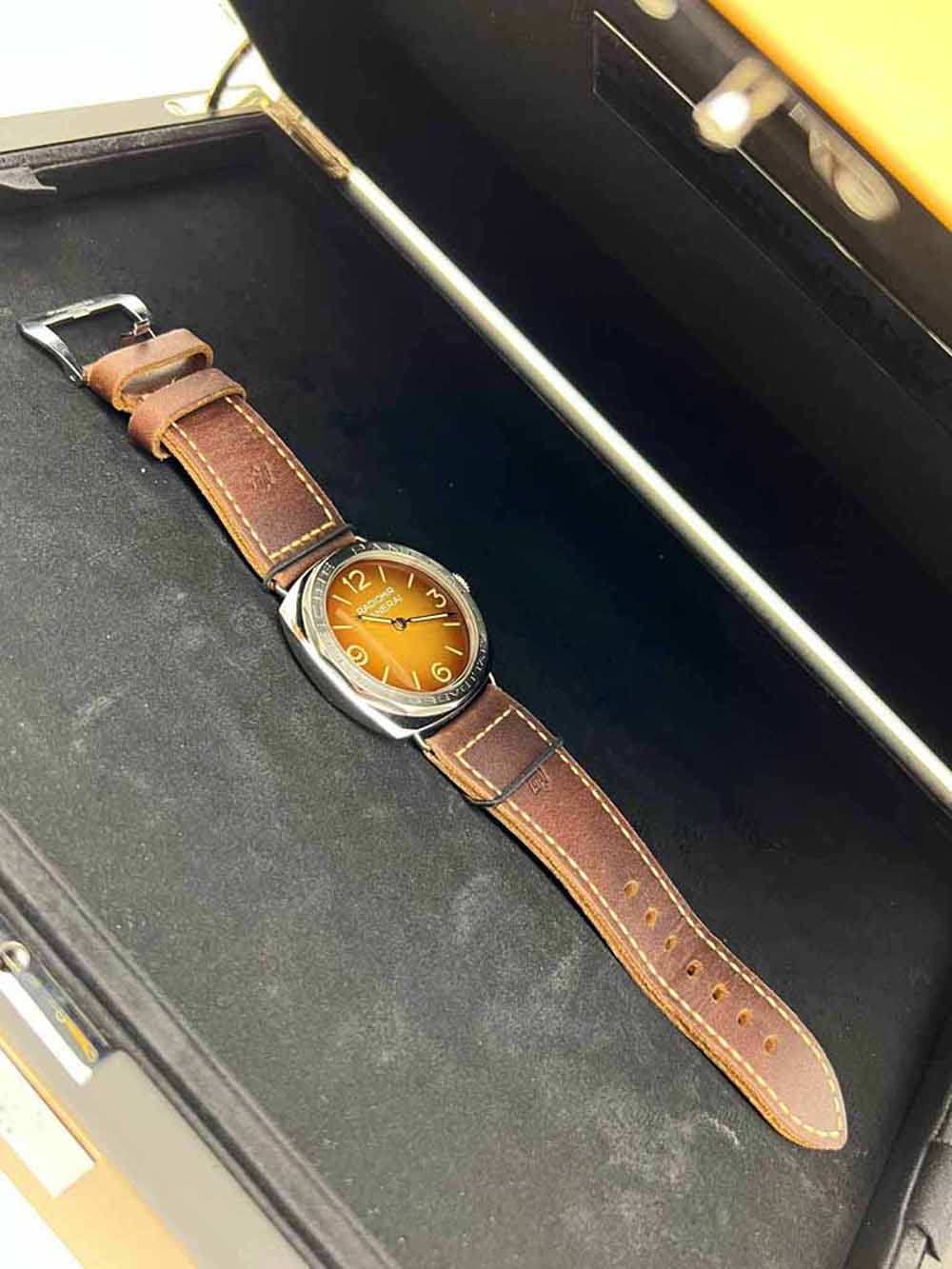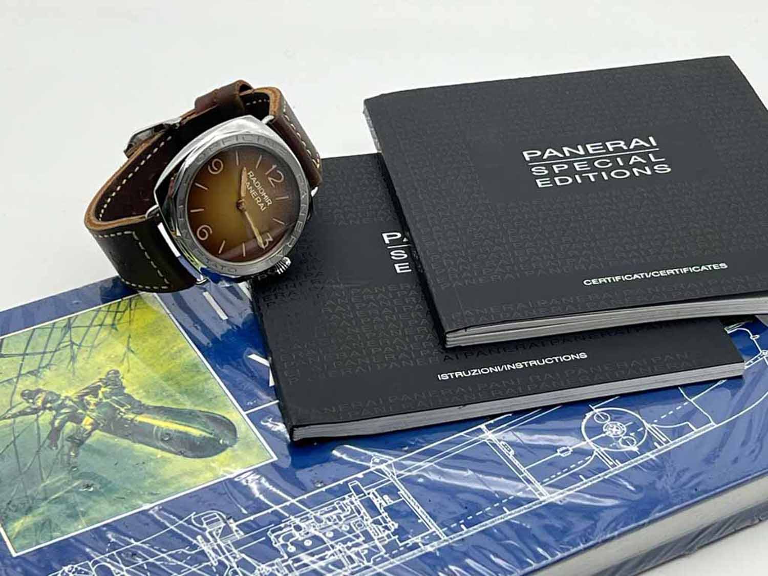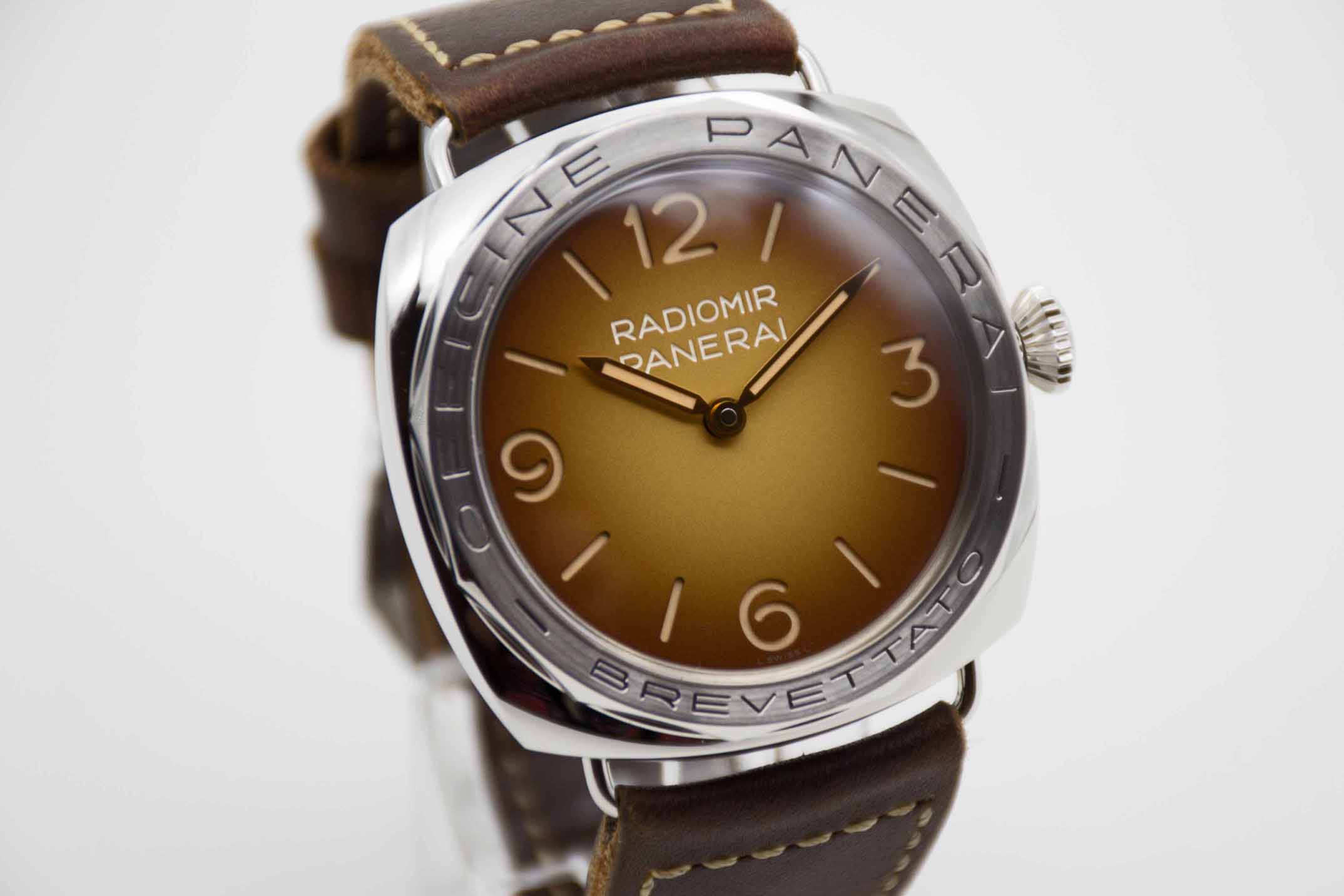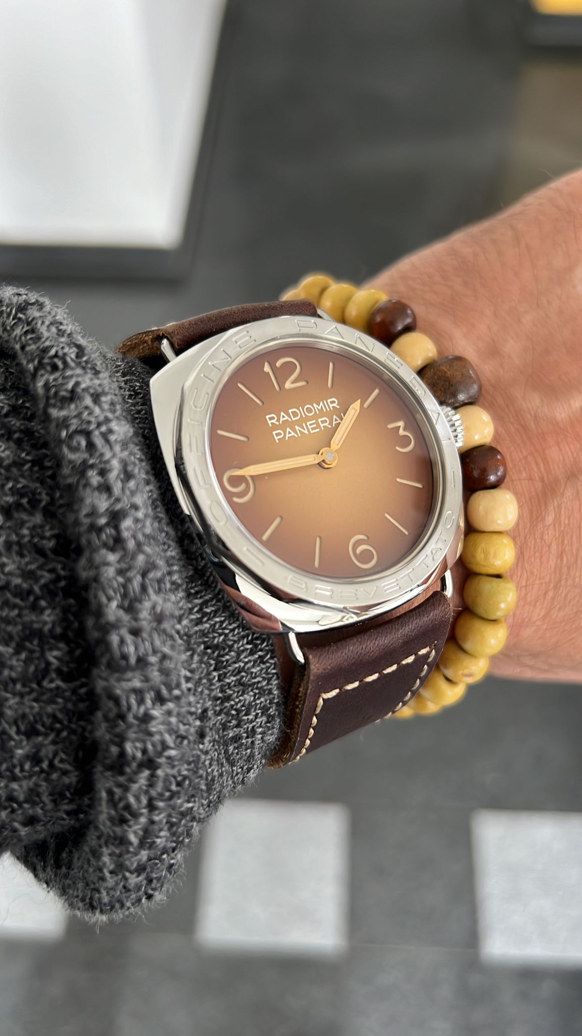 Radiomir Special Editions PAM00687 (No.551/1000) 47 mm Gehäuse mit braunem Edition Sandwich Zifferblatt und braunem Panerai Vintage Armband mit Panerai Dornschließe. Perfekte SE Radiomir in Panerai Edelholz-Box mit Schlüssel und Umkarton, SE Anleitung, Panerai Buch und Panerai Garantie Zertifikat aus 2018. (Wempe/Wien). Die Uhr stammt aus Erstbesitz befindet sich in perfektem und neuwertigem Zustand. Gerne nehmen wir Ihre Luxusuhr in Anzahlung. Zu unserer Sicherheit lagern wir sämtliche Uhren unseres Bestandes extern im Banksafe, daher bitten wir um vorherige Terminvereinbarung.